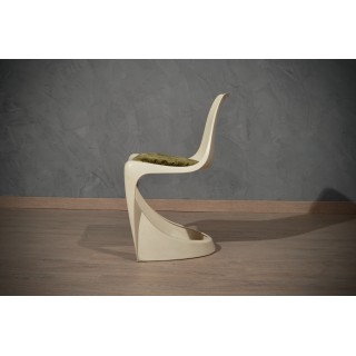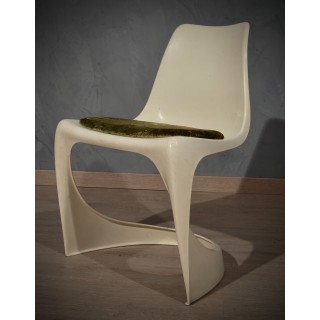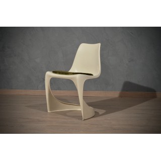 Chair "Cantilever 290": solid cast plastic structure. May sometimes have a yellow or orange color cushion on the seat. Published by "Cado" in 1970.