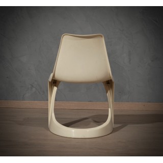 Sedia "Cantilever 290": struttura in solida plastica fusa. A volte può avere un cuscino di colore giallo o arancione sul sedile. Pubblicato da "Cado" nel 1970.