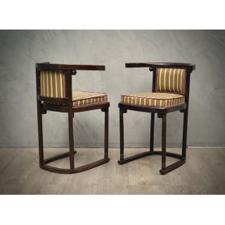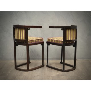 Coppia di sedie austriache Art Nouveau in legno di faggio e velluto a righe, 1910