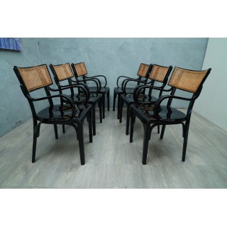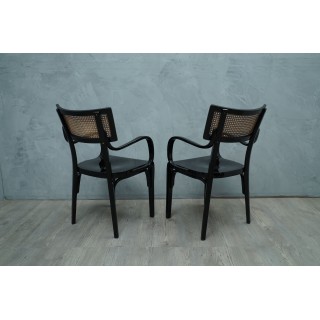 Artnouveau Black Wood and Vienna Straw Chairs, 1910