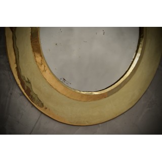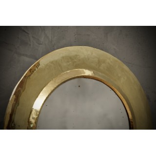 Lo specchio è rotondo e di piccole dimensioni. E' composto da una grande modanatura in ottone lavorata a mano. All'interno della cornice si trova il piccolo specchio. Da notare la lavorazione e la cura con cui è stata realizzata la cornice. Nella parte posteriore è presente una parte in legno pressato che sostiene lo specchio nella sua sede. Una bella architettura, elegante e ricca. Lo specchio della giusta dimensione donerà un tono elegante alla parete della vostra casa, rendendola ancora più raffinata. Misure ( diametro 40, H 40 ). Inches ( diameter 16, H 16 ).