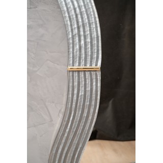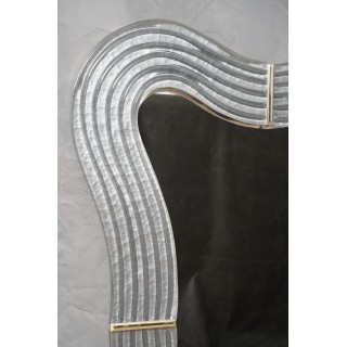 The mirror is composed of a perimeter frame in Murano glass in aqua green color, which forms curves in its design, which are interspaced by brass moldings. The glass is also not smooth but forms beautiful horizontal undulations around the perimeter. Its design is interesting, giving movement and lightness to the frame. Misure Cm ( 120 x 80 ). Inches ( 47 x 31 ).