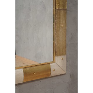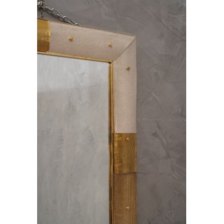 The structure of the wall mirror is in wood, where the gold and white Murano glass is housed. The frame of the mirror is made up of a series of shingles, positioned one next to the other. The shingles are made of Murano glass in gold and white color, and the back of the shingles rests on the plane of the frame, to enhance the gold and white color. Along the perimeter of the shingles, both internally and externally, some brass moldings have been placed. It can be mounted both horizontally and vertically. Created from Marco Seghetti for our store Hannauroma, the wall mirror are unique and original in its kind. Misure ( 122 x 89 ) Inches ( 48 x 35 ).