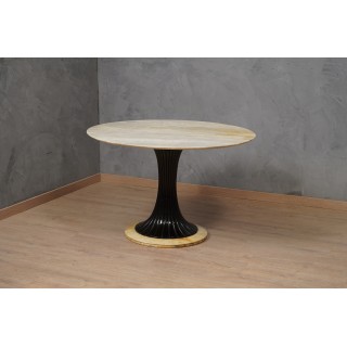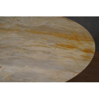 Una delle caratteristiche del tavolo è la sua linearità e la sua semplicità nella sua raffinatezza; una visione minimalista pre-tempo. La forma rotonda del tavolo e il sottile spessore del marmo donano un'inconfondibile sensazione di leggerezza. Misure ( diametro 120, H 75 ). Inches ( diameter 47, H 29,5 ).