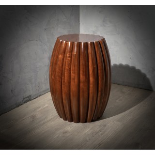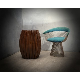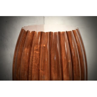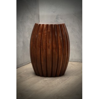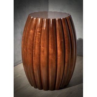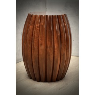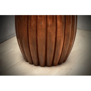 La coppia di tavolini è di forma rotonda, e tende ad allargarsi nella parte centrale. Longitudinalmente presenta una particolarissima nervatura che caratterizza tutto il tavolo, un design molto particolare e tutto italiano nella sua unicità. Il loro colore è molto vivace e caldo, e permette di abbinarli a tutto. Il suo design è ricco e fa sentire la sua presenza, in modo da caratterizzare tutta la stanza in cui saranno accolti. Misure ( diametro 53, H 70 ). Inches ( diameter 21, H 28 ).