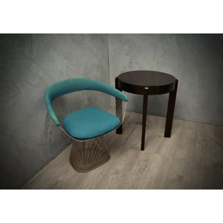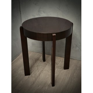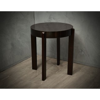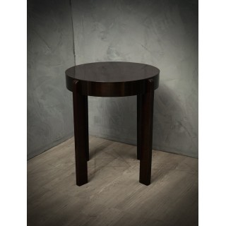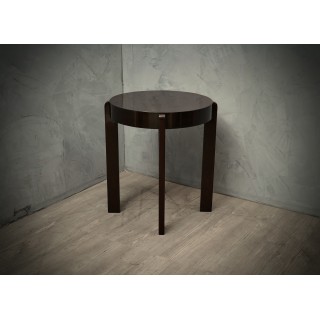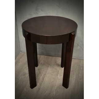 Il tavolino è tutto impiallacciato in legno di noce tinto in mogano scuro. Di forma rotonda, il tavolino d'appoggio è composto da un piano delimitato da un'ampia fascia laterale, che ospita le quattro gambe. Le gambe sono lineari e dritte a sezione rettangolare; questi danno uno slancio e una particolare eleganza al tavolino. Misure Cm ( Diametro 60 x H 70 ). Inches ( Diameter 24 x H 27 ).